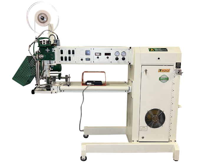 Miller Weldmaster T100 je určena pro nejnáročnější výrobní požadavky a poskytuje všestrannost multifunkčního stroje pro vaše velké výrobky. T100 přijímá tkaniny o šířce až 36", které procházejí hrdlem bez přehýbání.